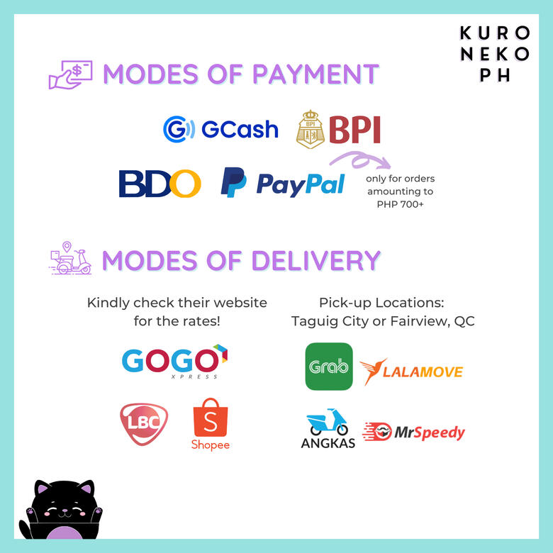 Once on hand and fully-paid, we'll do our best have your order shipped out within 2-7 working days depending on the volume of orders being processed. Both admins have full-time work so please bear with us if there are slight delays in the ship out.Delays are out of our control once we've handed your package to the courier. You may reach us if you need help in tracking your package.We are not liable for any loss or damages incurred during shipment but we will do our best to avoid that by packaging your order securely. We highly suggest you choose a trusted courier and indicate an accurate declared value for shipments (if applicable).